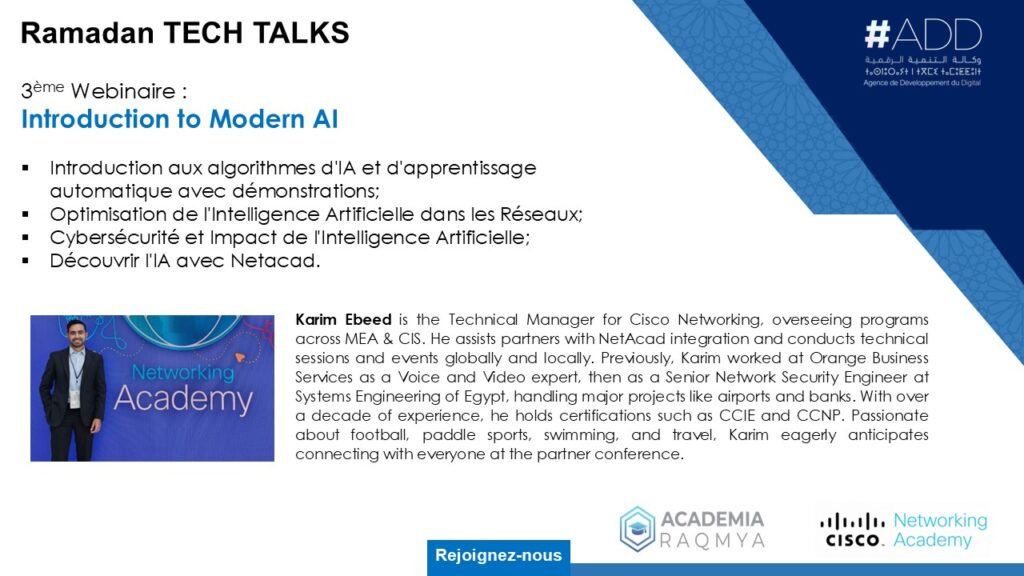 Ramadan Tech Talks, le 3ème webinaire : Découvrez les dernières avancées de l’IA avec Academia Raqmya & Cisco Netacad